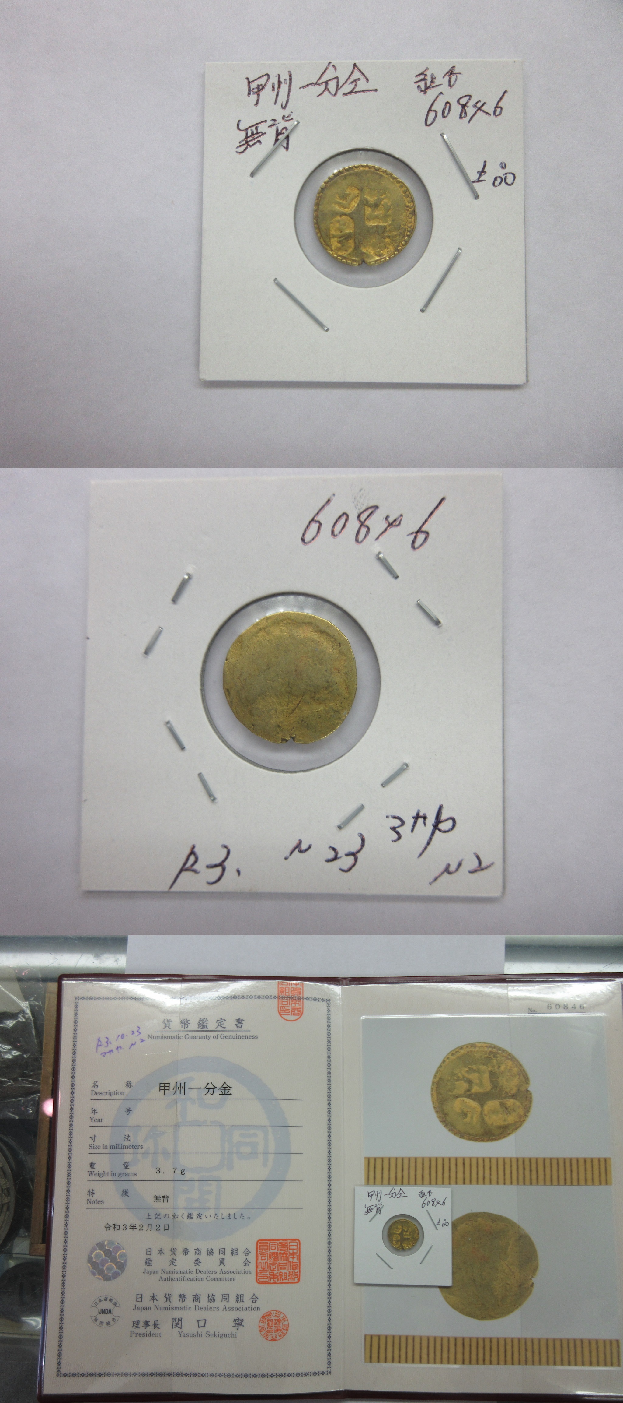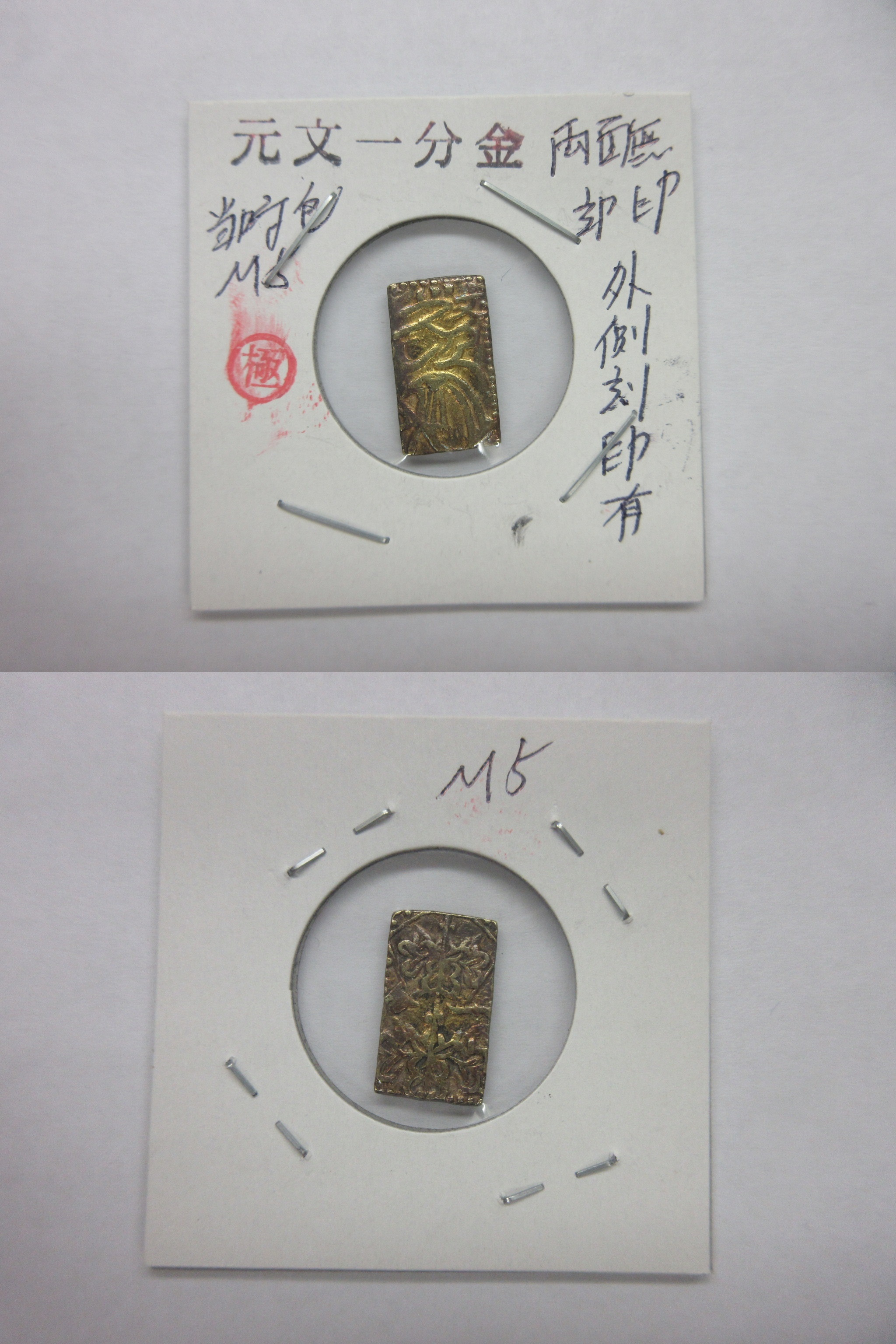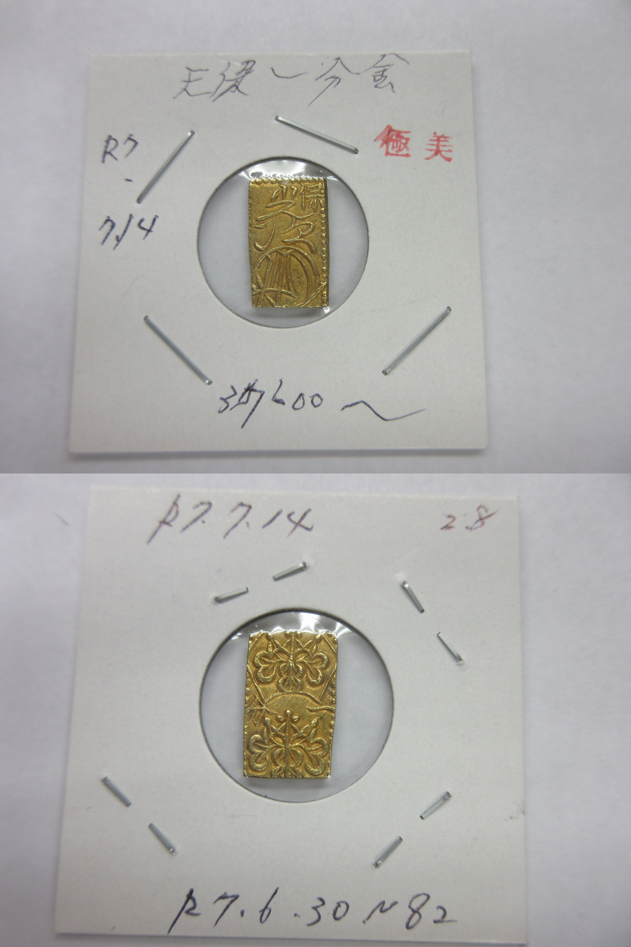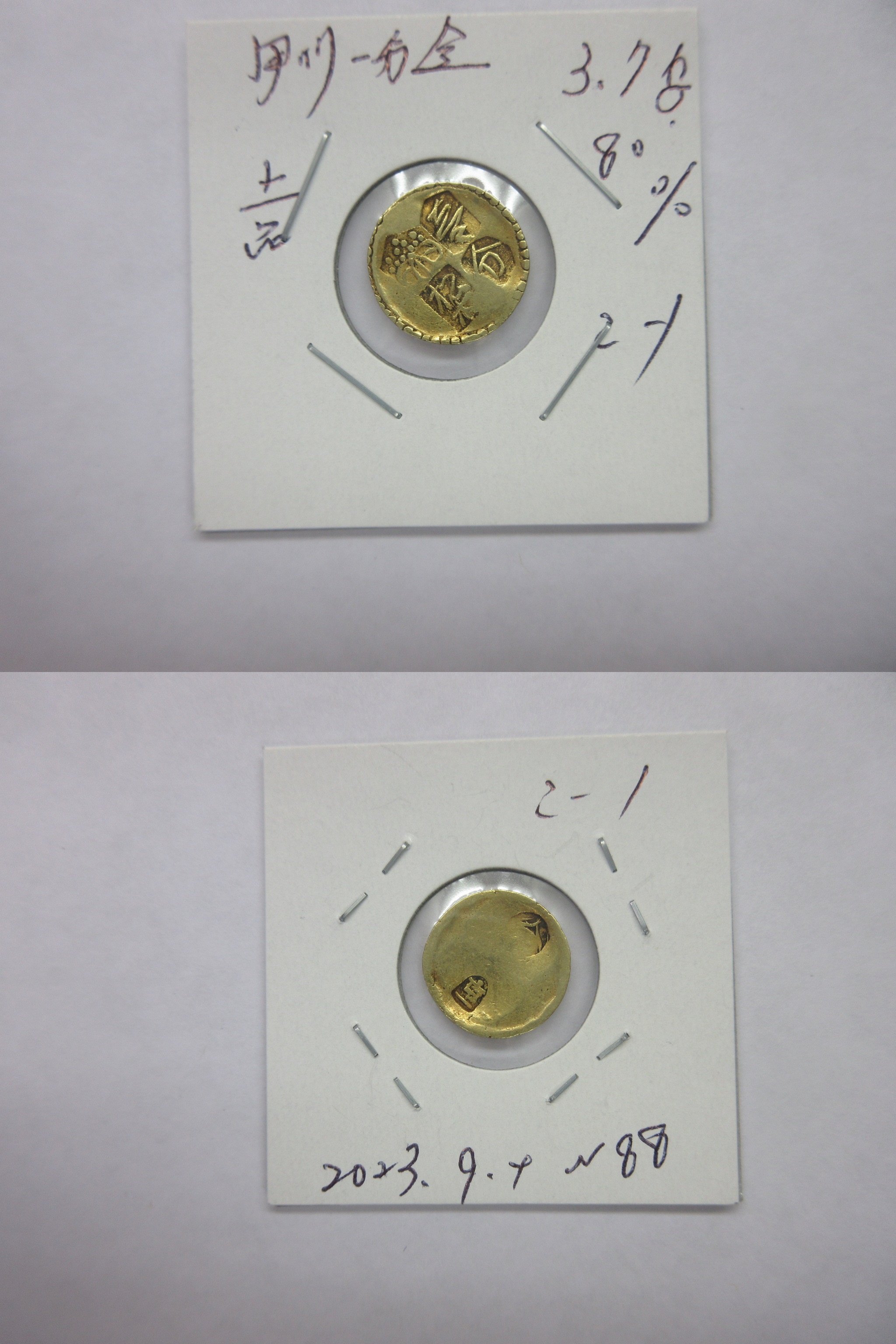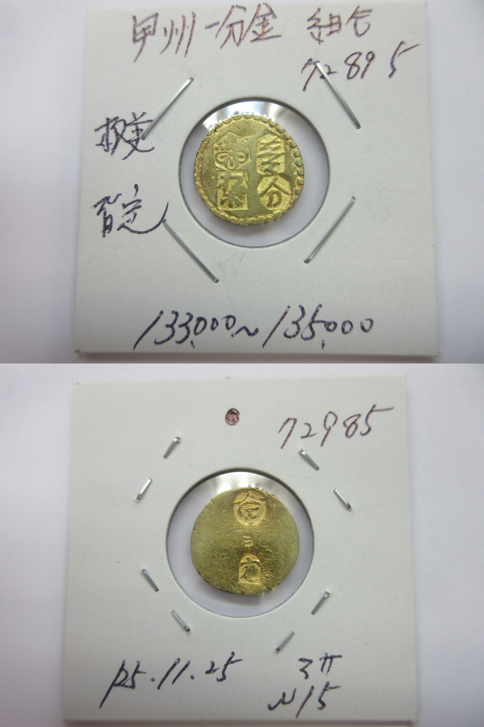甲州一分(二朱)金組合鑑定書付き |