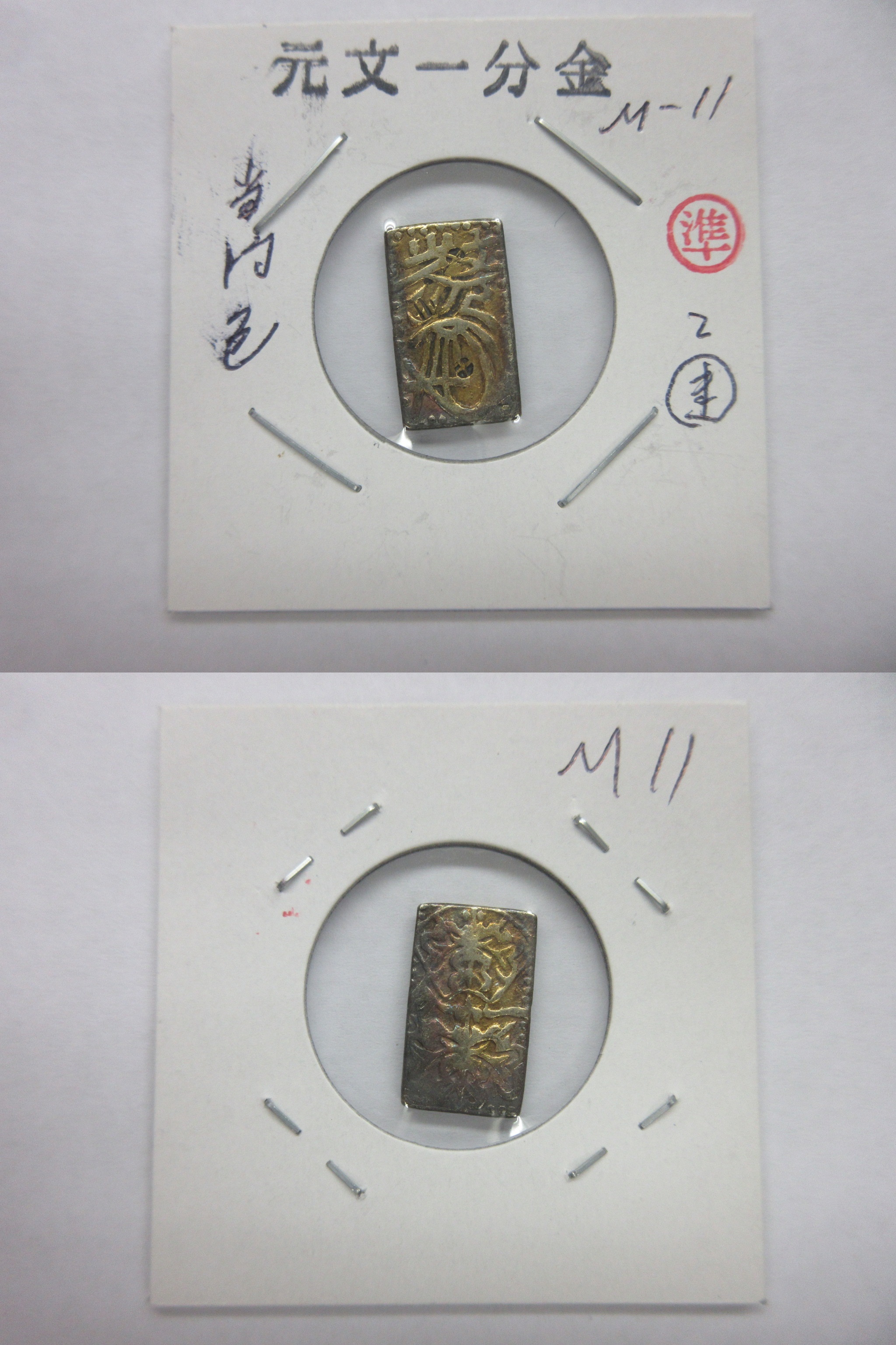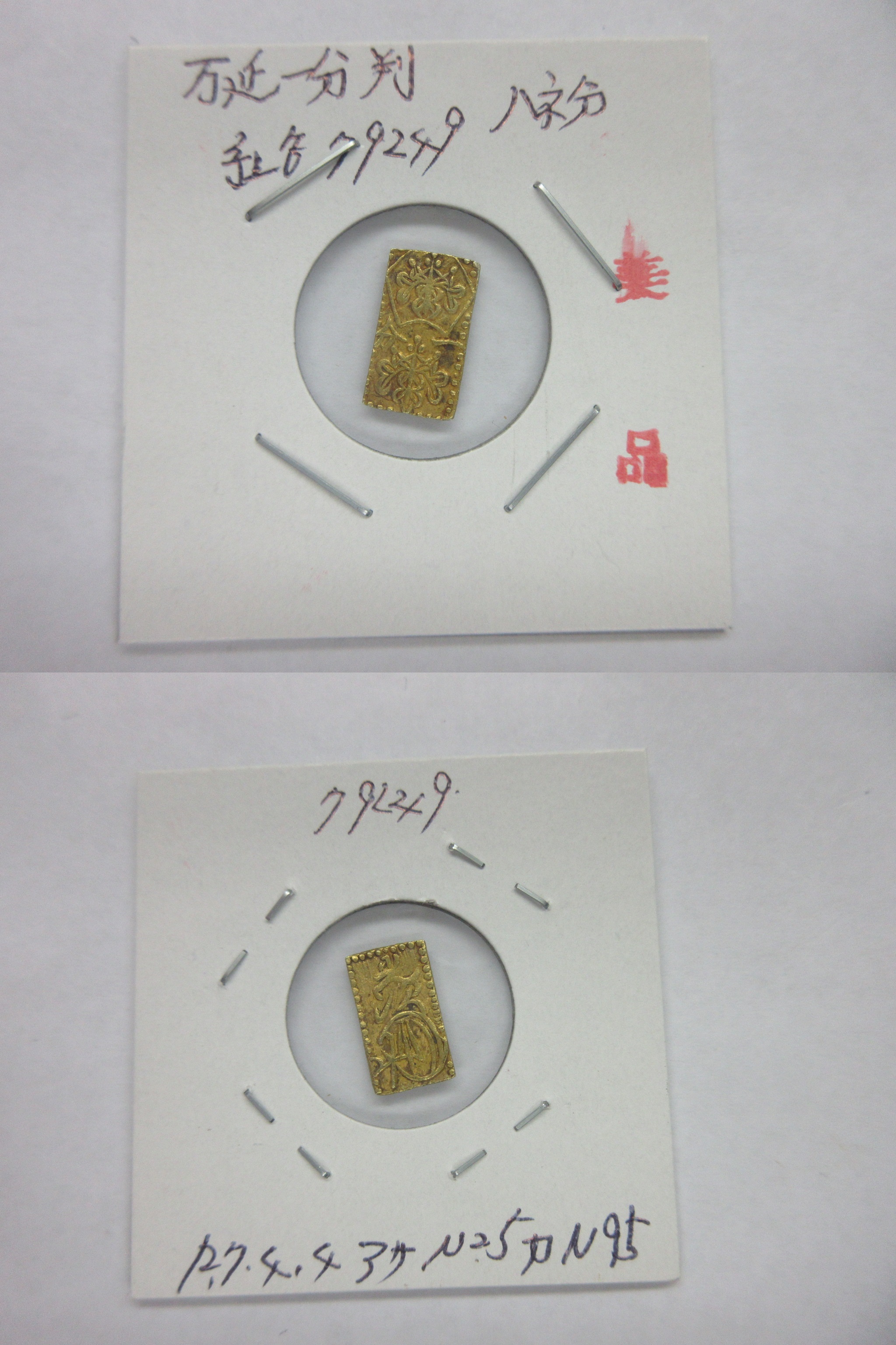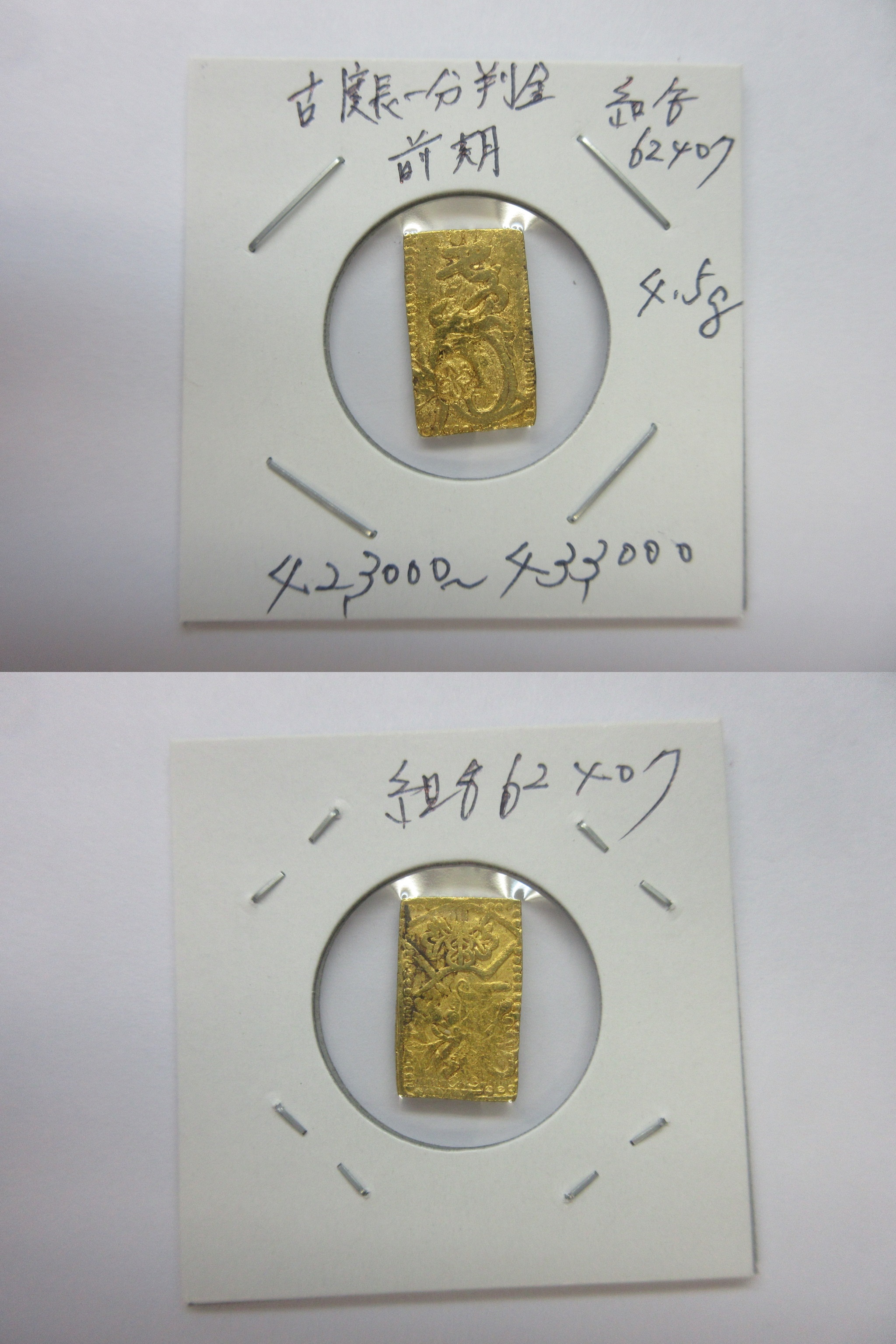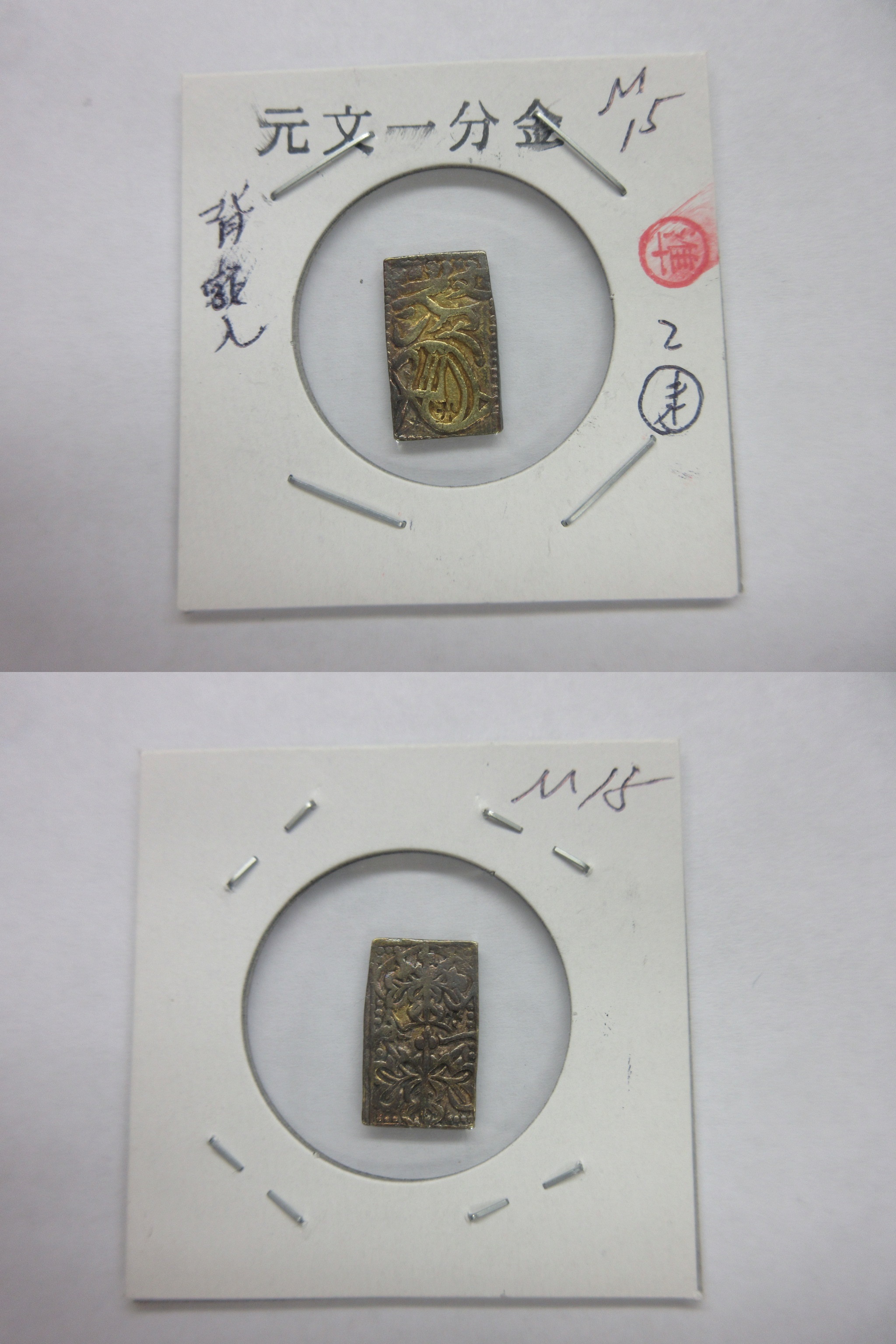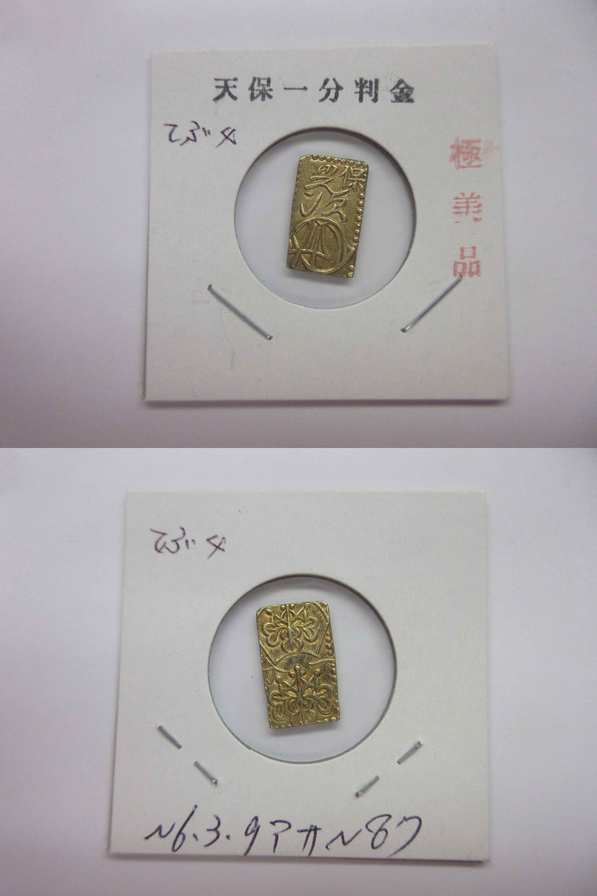 甲州一分(二朱)金組合鑑定書付き |