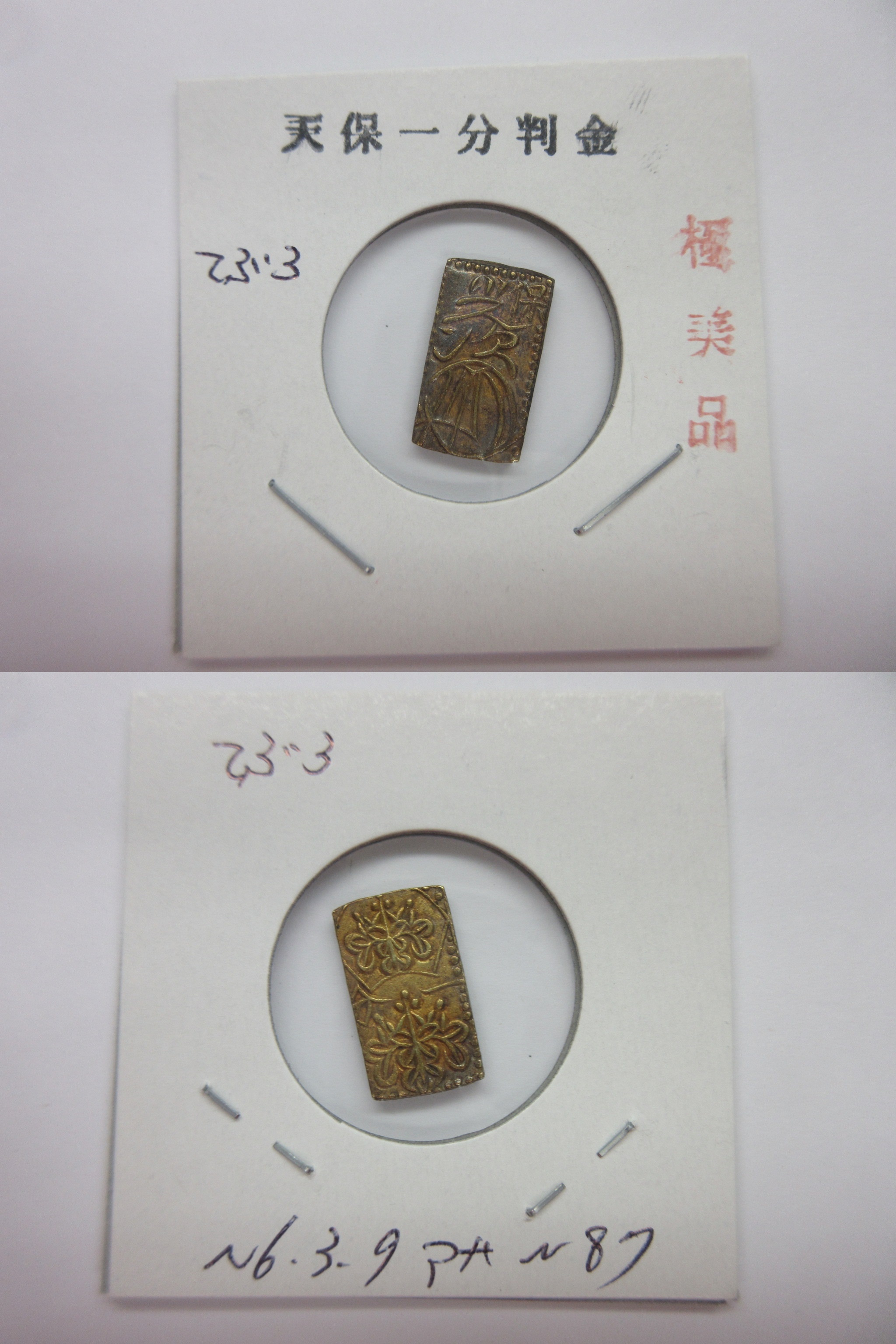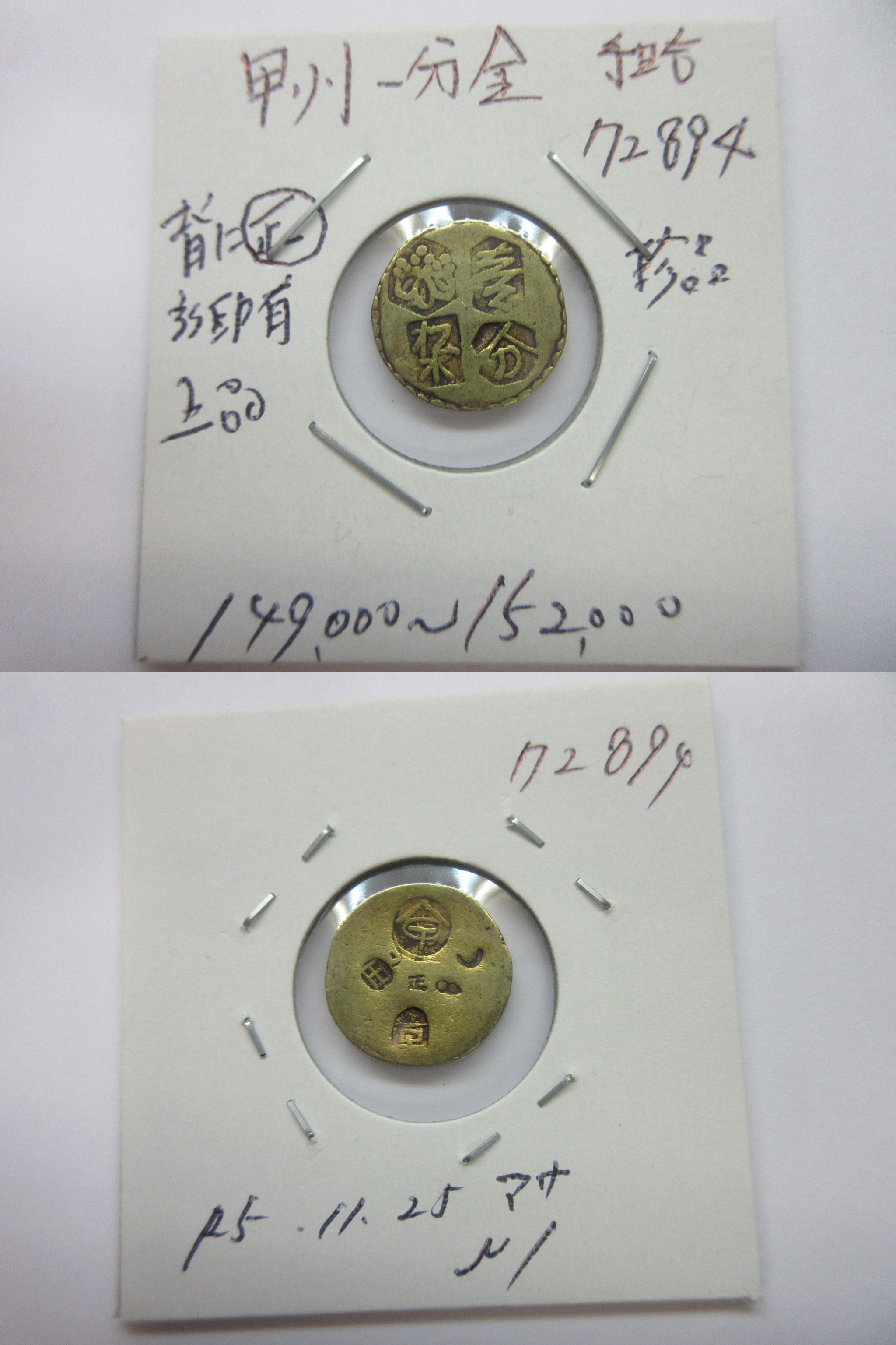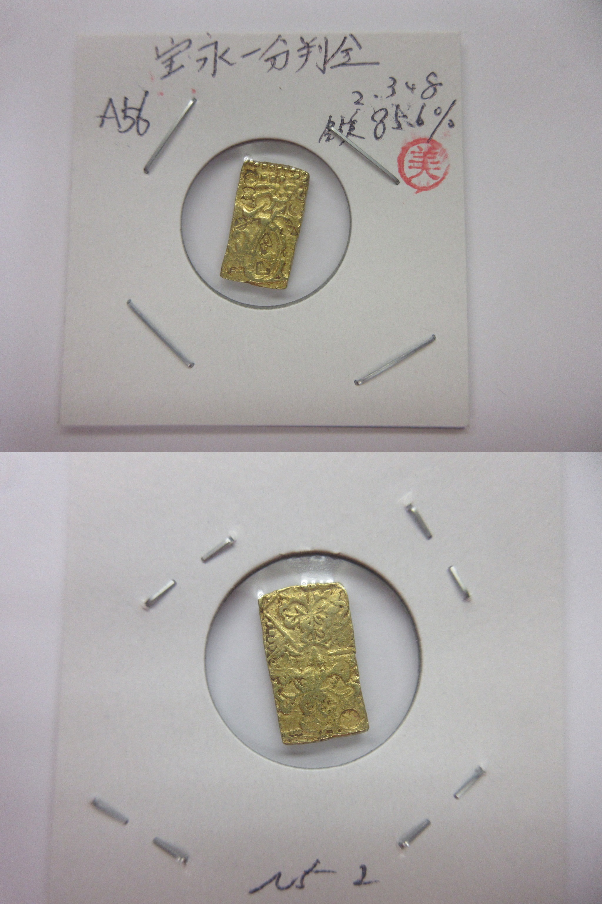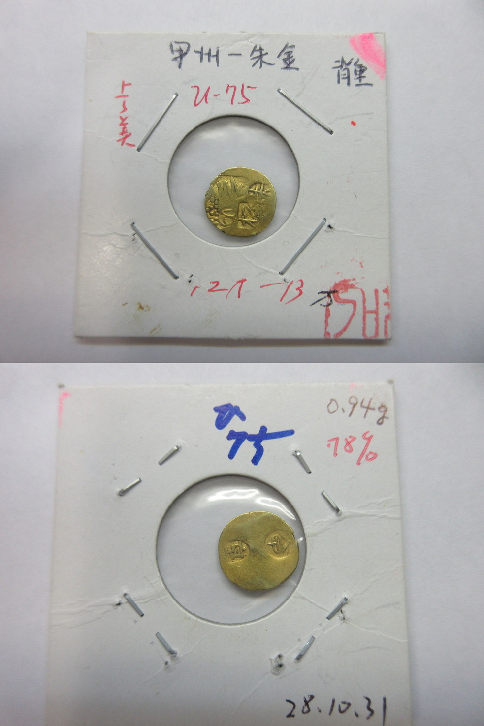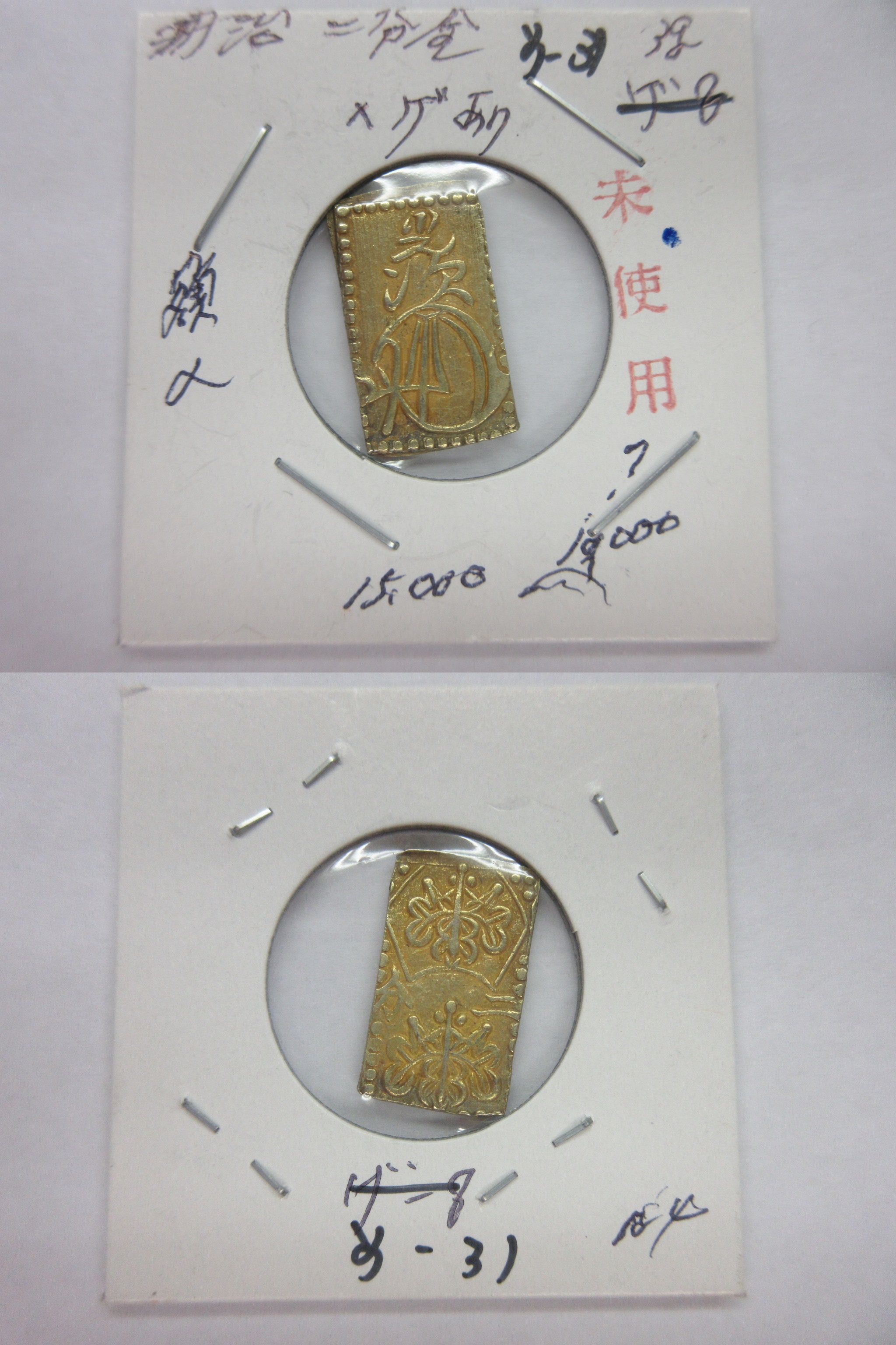甲州一分(二朱)金組合鑑定書付き |