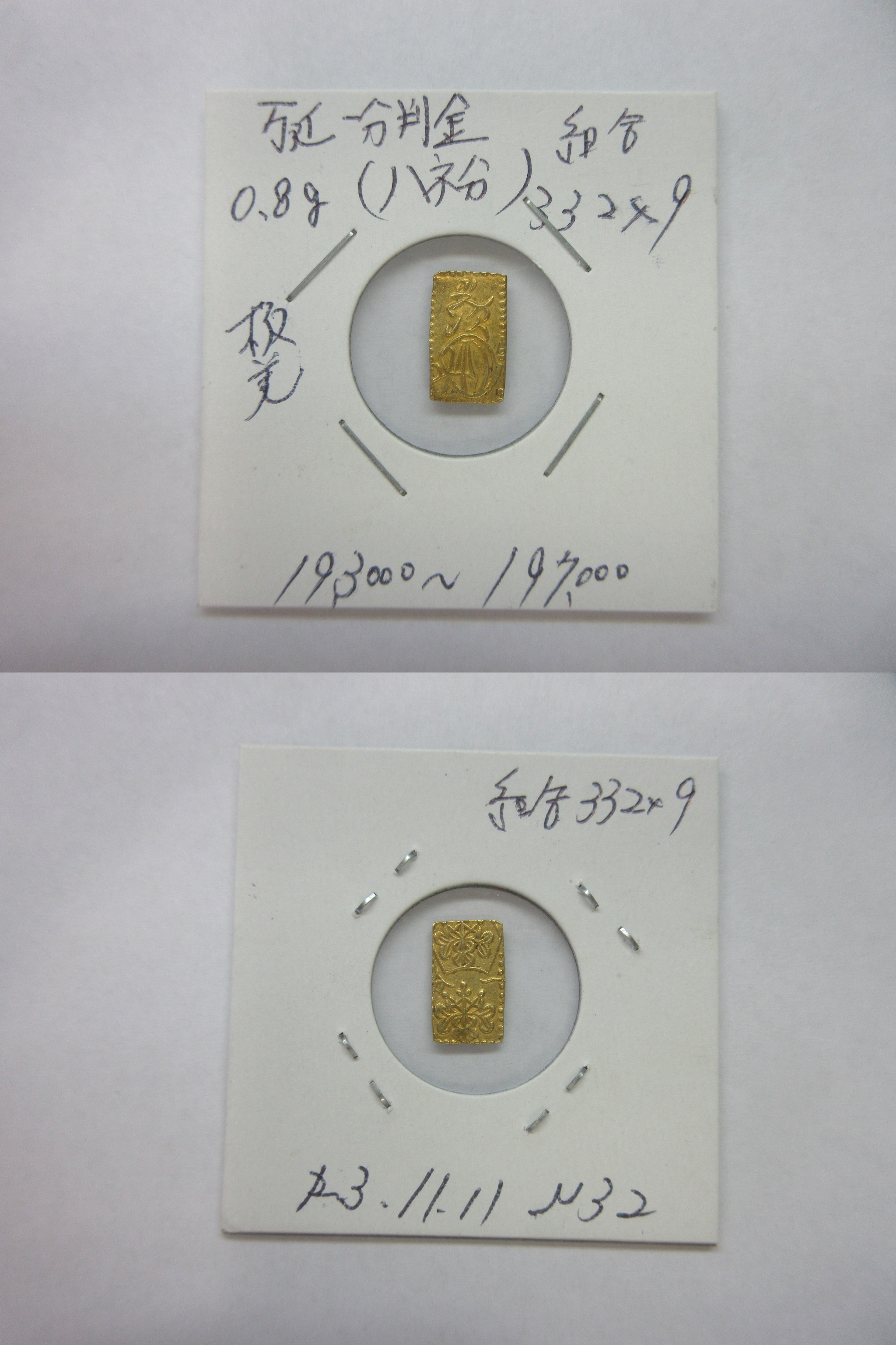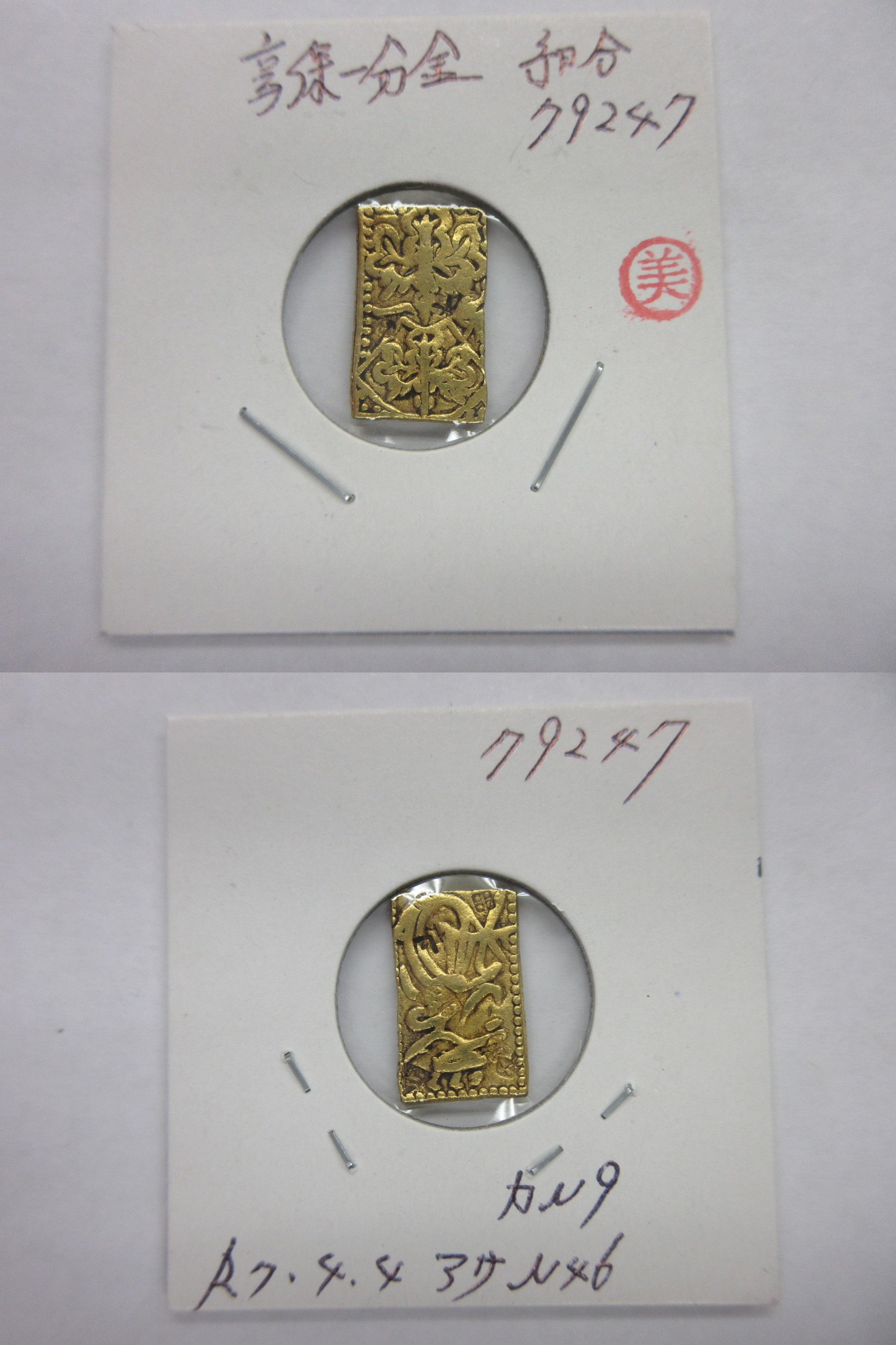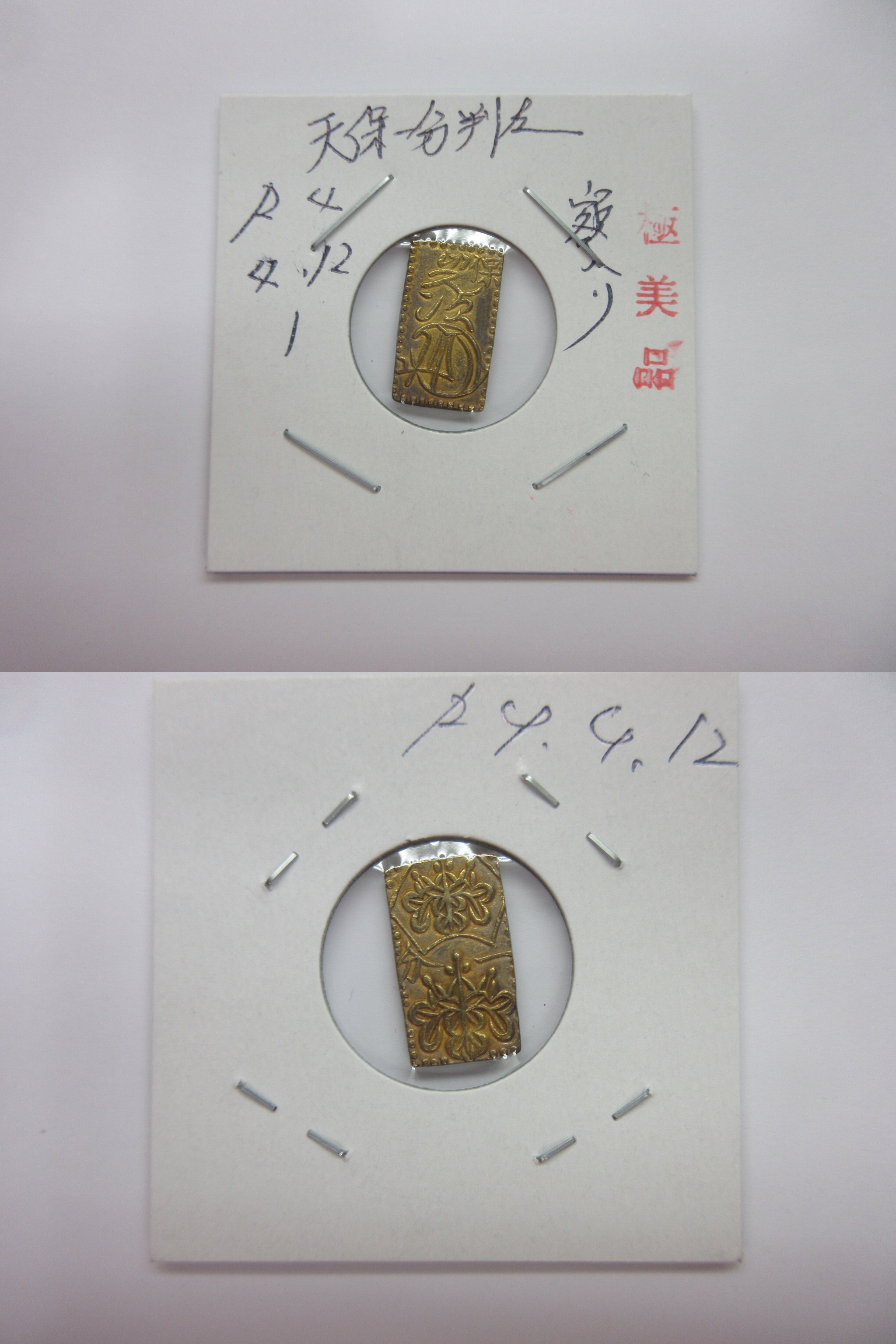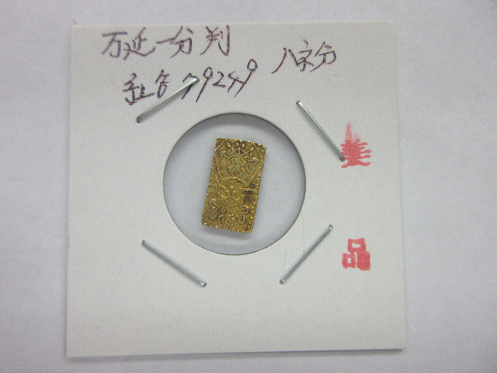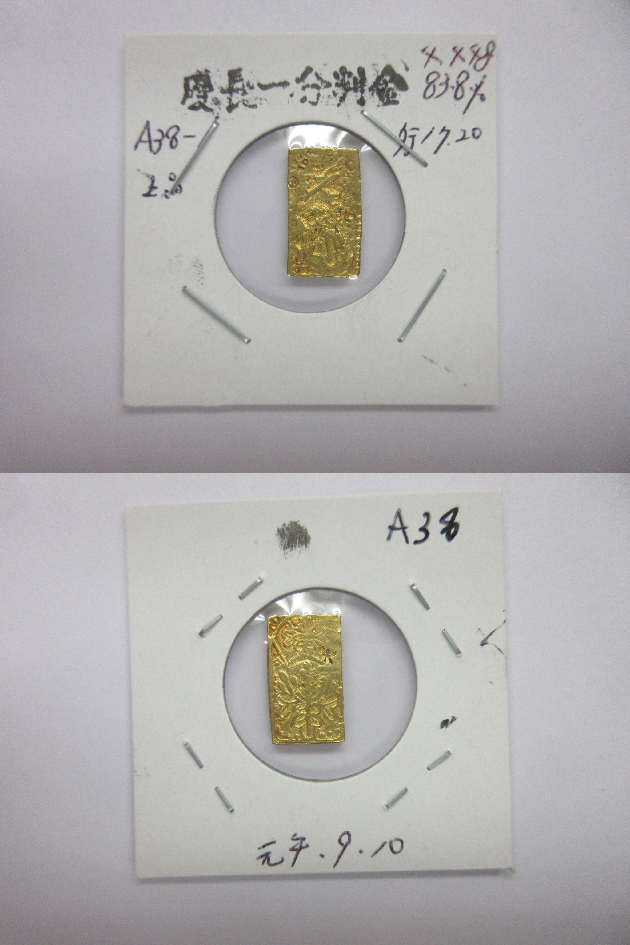甲州一分(二朱)金組合鑑定書付き |