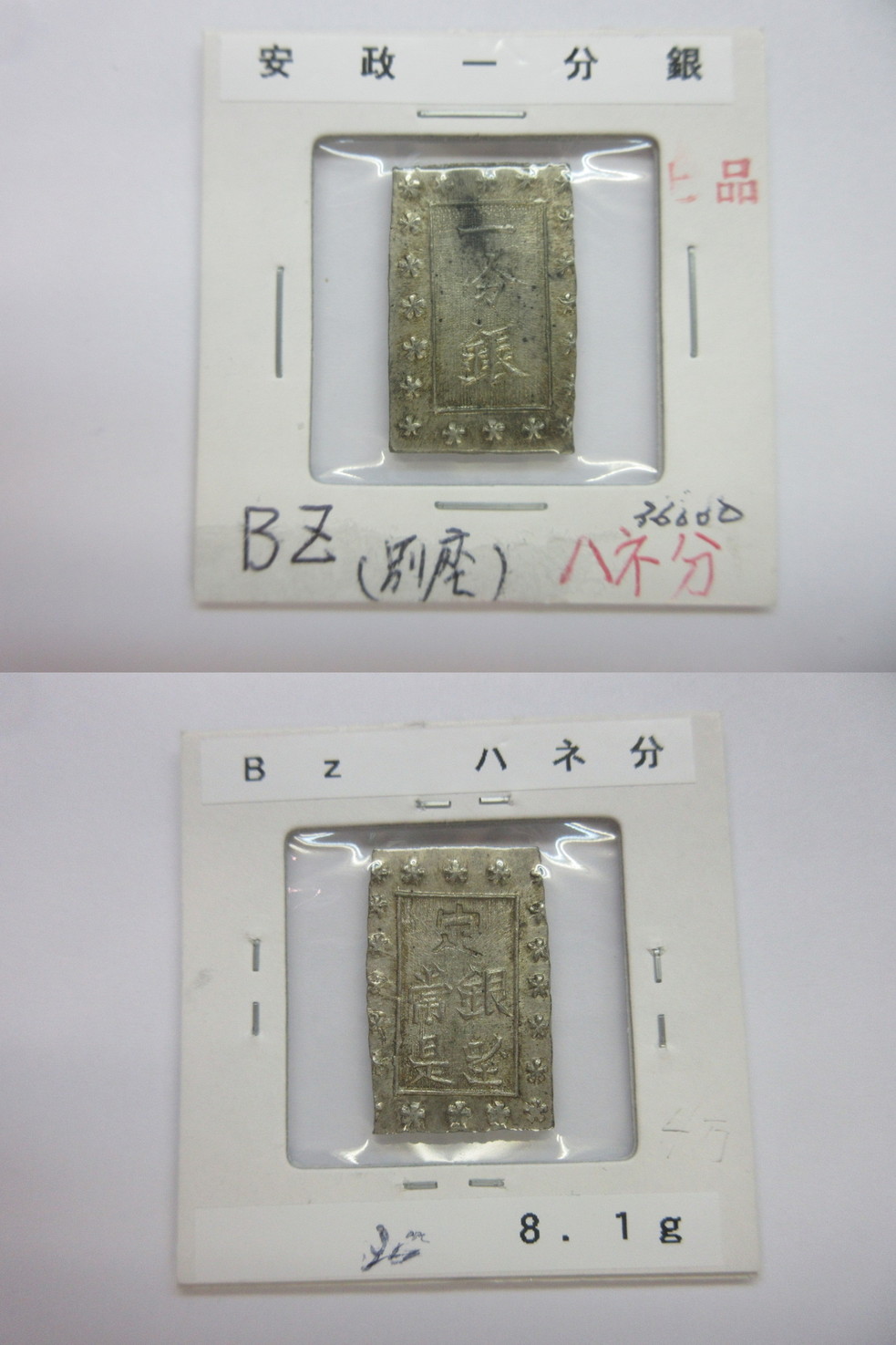 分銀コーナ(古南鐐二朱銀お求め安いコーナ)