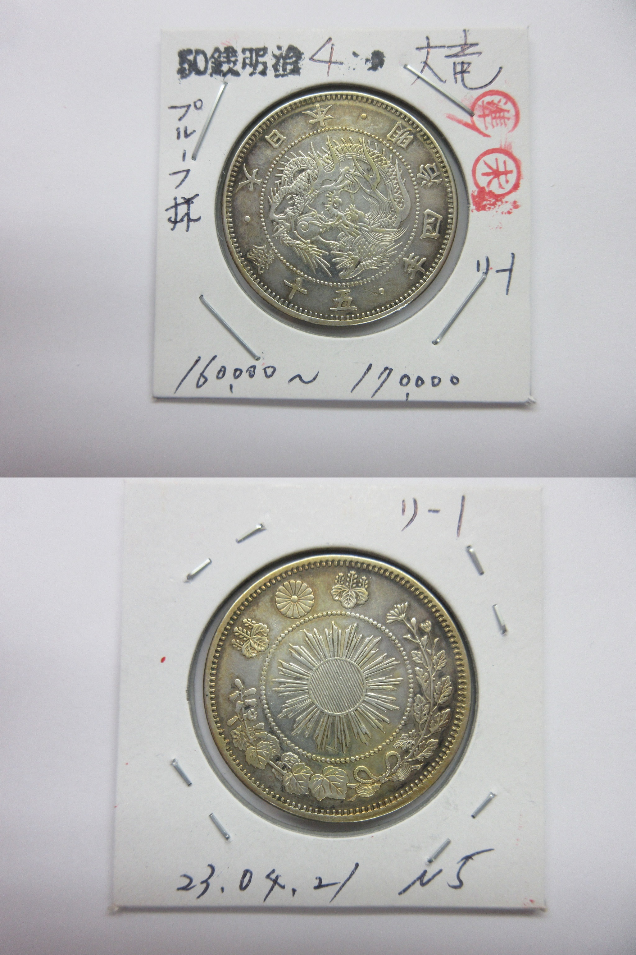 旭日龍小型50銭銀貨