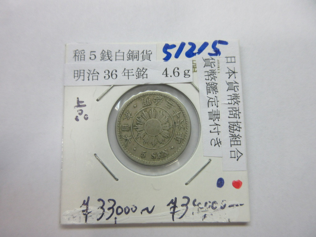 稲5銭白銅貨明治36年